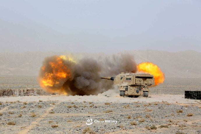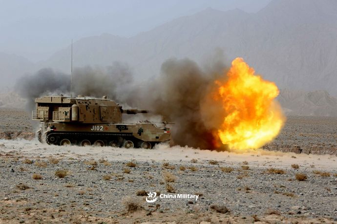 中国陸軍砲兵連隊が新疆ウイグル自治区で実施した05式155mm自走榴弾砲の野外実弾訓練を公開しました。