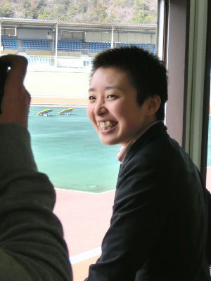 森美紀選手。本紙カメラマンに撮られているところを後方から記者が激写してみた。あす(28日)からの玉野競輪欄は充実しているので、ぜひご覧ください。