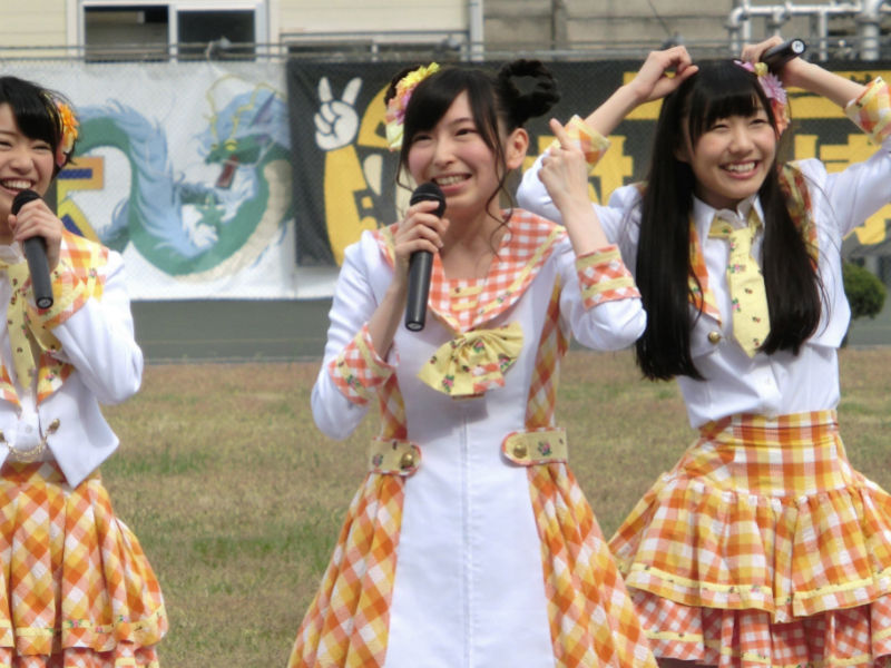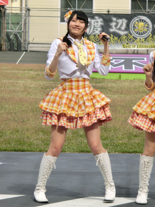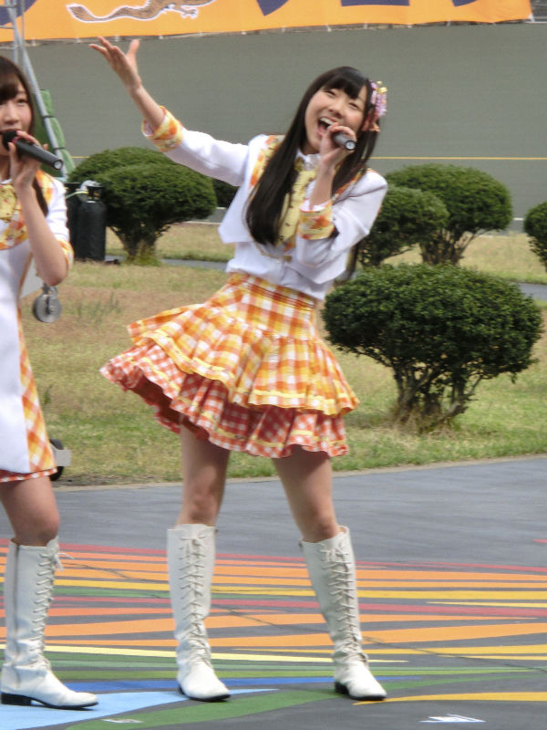 「パレオはエメラルド」「SKE48」「手をつなぎながら」の3曲を熱唱。途中のトークタイムで大矢は「競輪場ということで車輪をイメージしてきました」と2つの輪を作った自分の髪型を指さし、ファンの笑いを誘っていた。