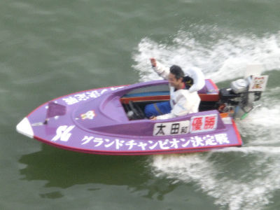(1)太田和美がイン速攻で1着。湯川浩司(07、08年)に続く史上2人目のグラチャン連覇を達成した。(3)田村隆信、(4)赤岩善生が2、3着に入り、3連単134は1450円(4番人気)で決着した。
