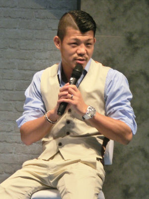 トークショー後、記者が控室で亀田興毅選手を取材。