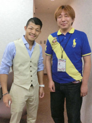 亀田興毅選手と写真を撮った。亀田興毅選手いわく「今まで記者と写真(を撮ったこと)はないな」。それでもイヤな顔をせず...むしろ笑顔で撮影に応じていた。