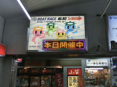 ボートレース若松の広告があった。「本日開催中」と記されている。