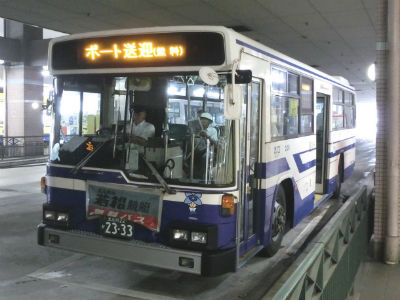 バス前面に回って撮影した。黒崎駅バスセンター5番のりばから若松ボートまで約25分。黒崎近辺から若松ボートに行く人はぜひ利用してほしい。