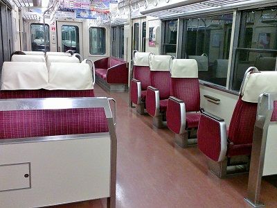 座席が進行方向や逆方向などグチャグチャになっている(列車の進行方向は手前でなく向こう)。違和感ありありで気になって仕方ない。自ら手を出すのもどうかと思うので静観していたが、途中駅で乗客が増えたので、各々が座席を進行方へ向けていた。