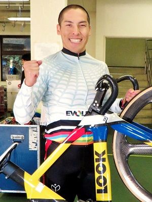 ガッツポーズの河端朋之。先月、韓国の仁川で行われたアジア大会の男子スプリントで銀メダルを取った実力者は「KEIRIN EVOLUTION」が向いているようだ。