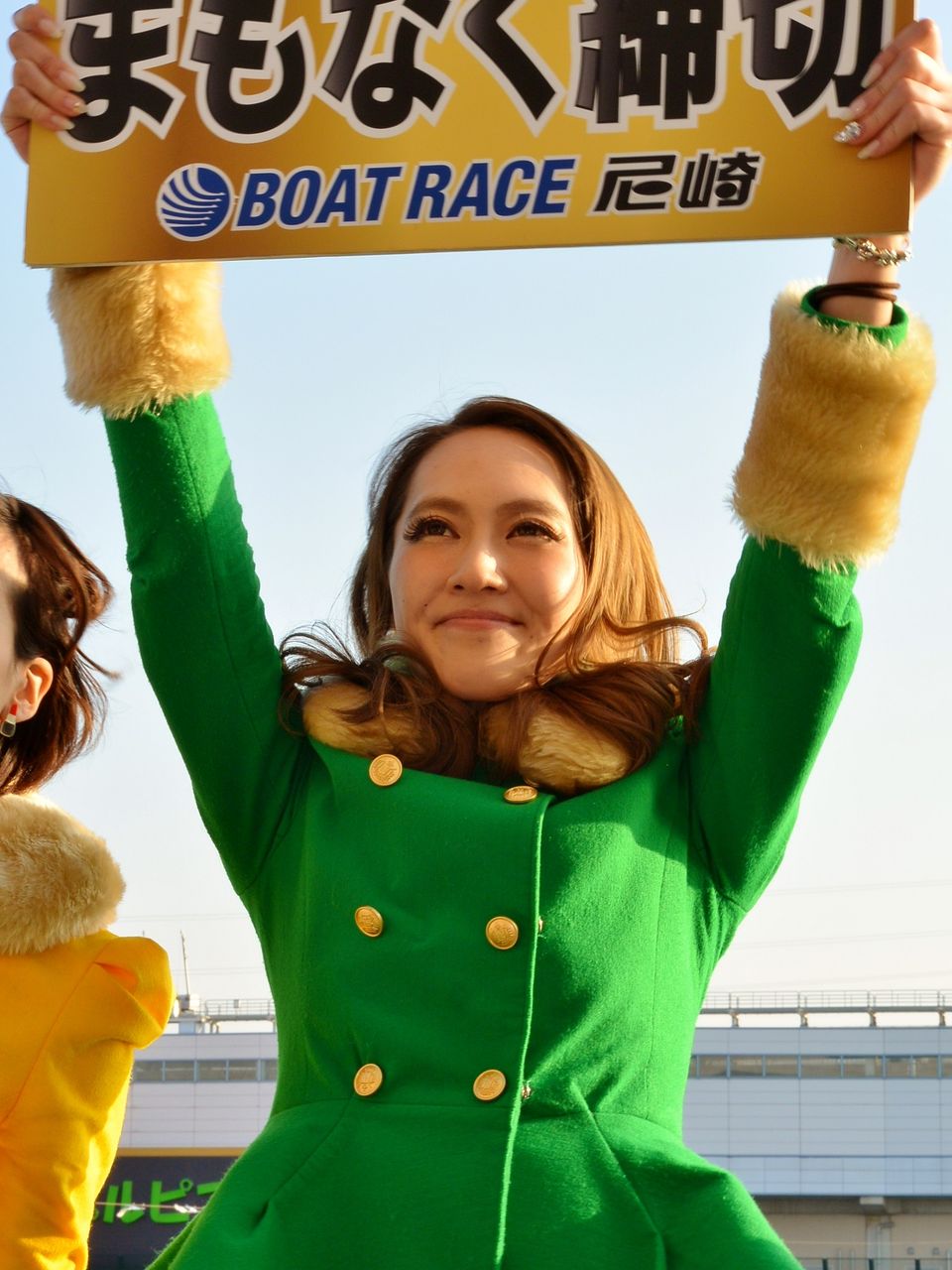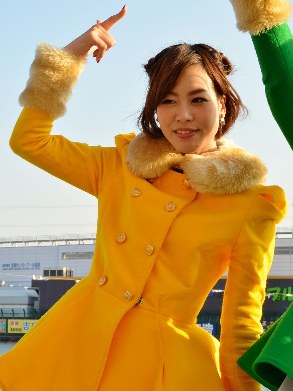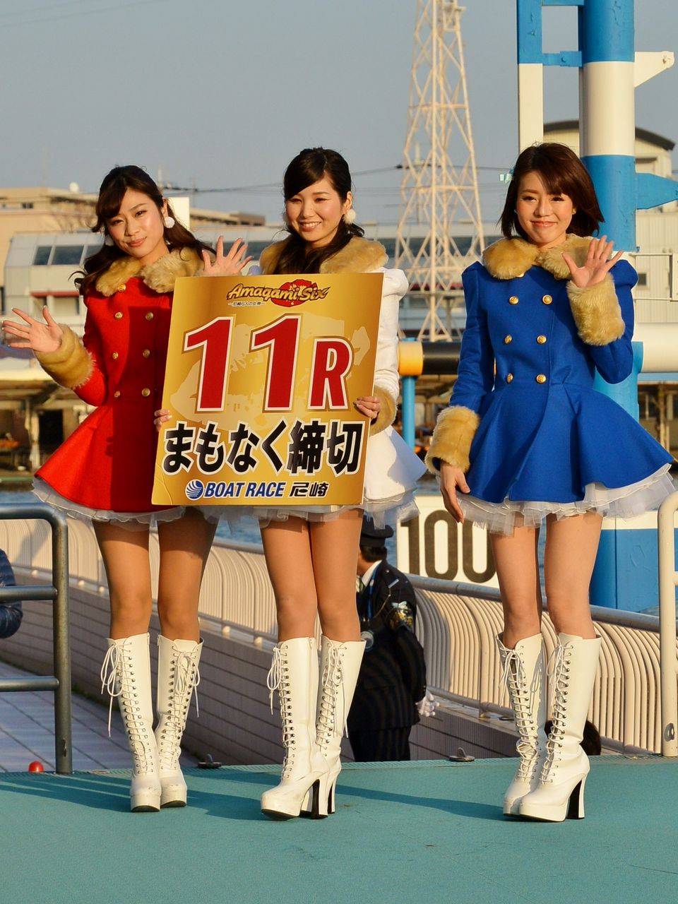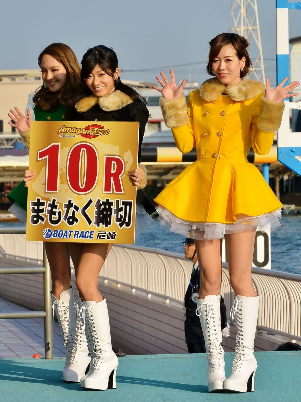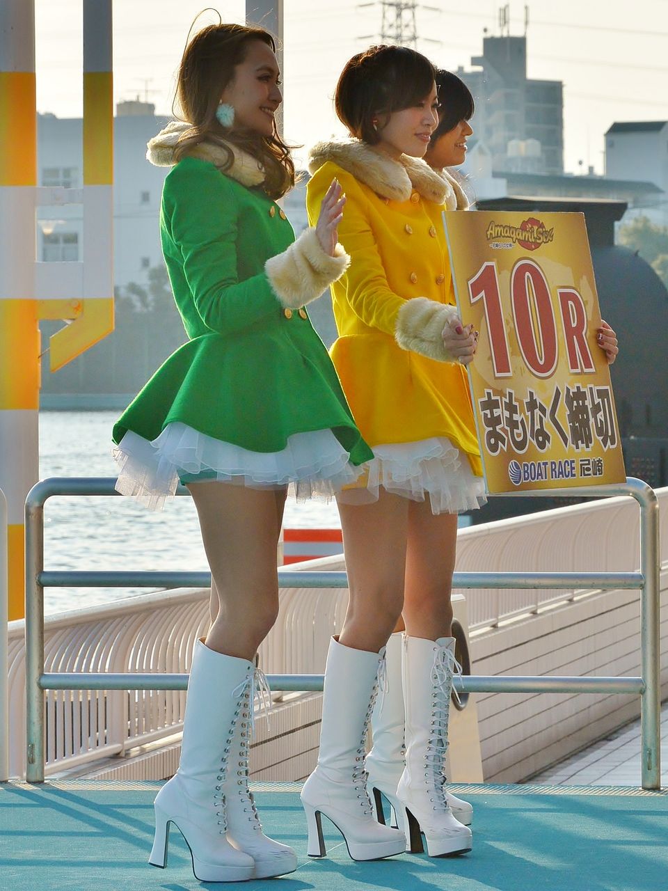 Vol.3の続き。「ミニライブ」のあとは「ラウンドガール」。ピット取材の合間に水面前ステージへ。まずは10R発売開始直後。あまがみブラック(史織)、イエロー(益田あゆみ)、グリーン(miwaco)が登場。
