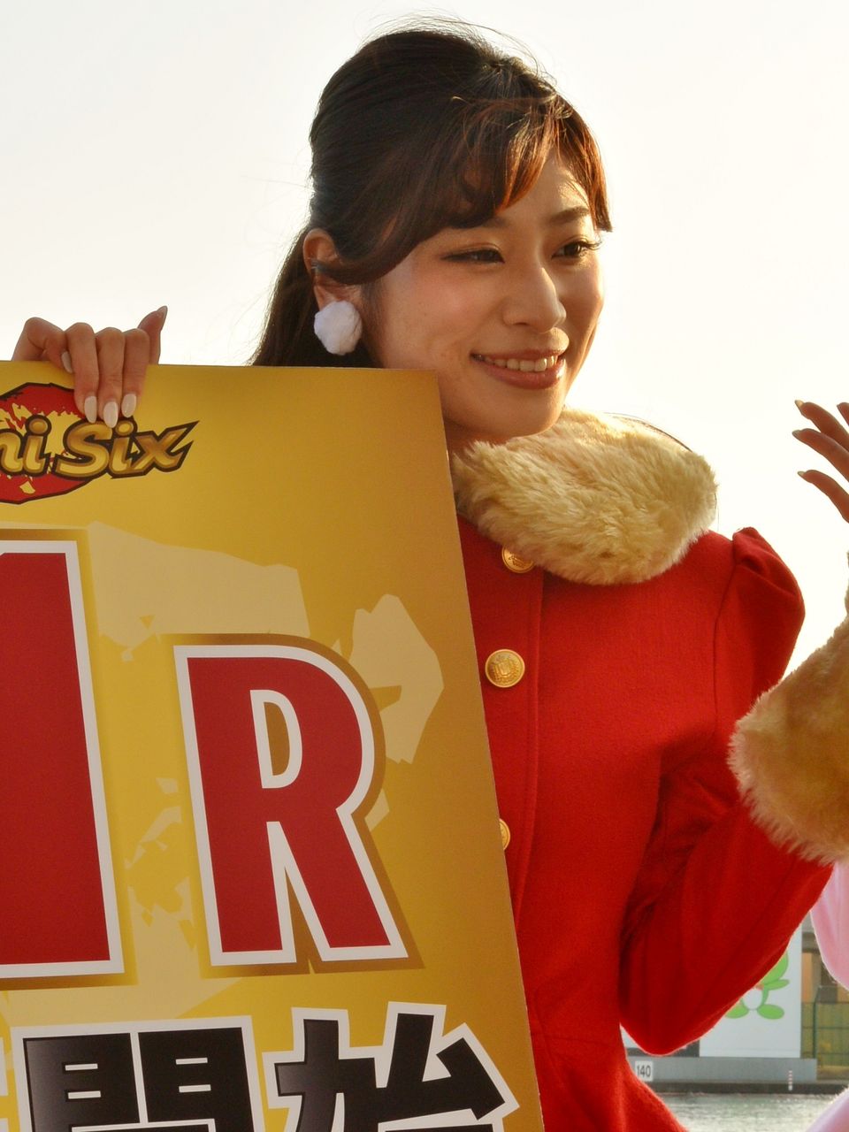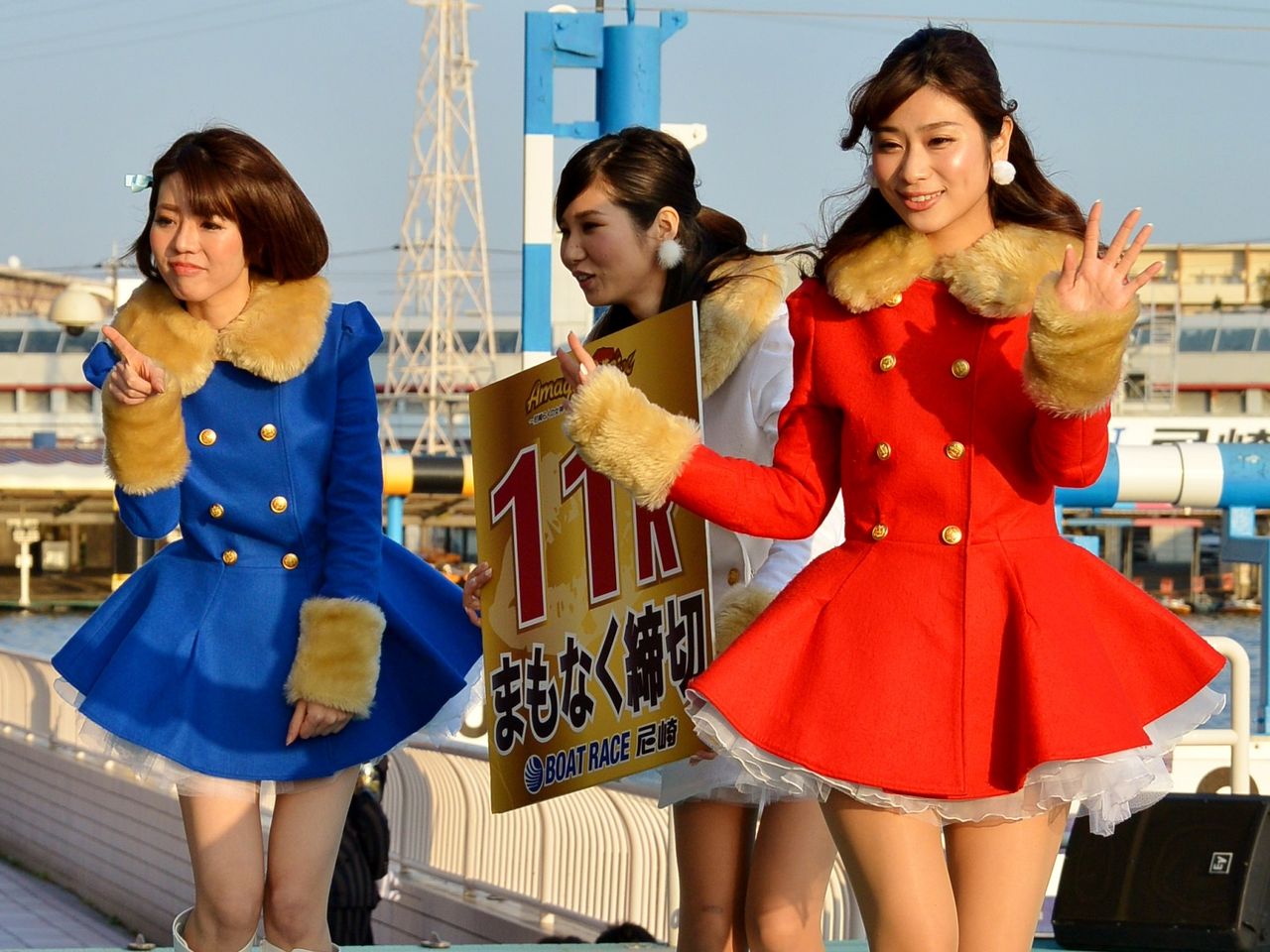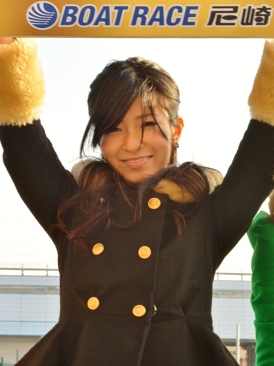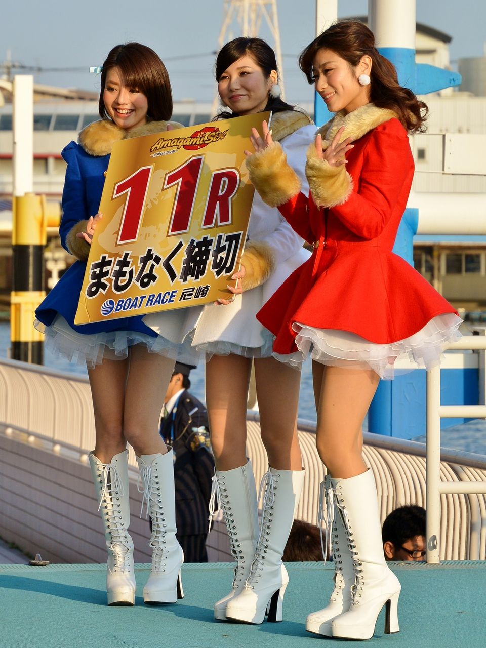 Vol.3の続き。「ミニライブ」のあとは「ラウンドガール」。ピット取材の合間に水面前ステージへ。まずは10R発売開始直後。あまがみブラック(史織)、イエロー(益田あゆみ)、グリーン(miwaco)が登場。