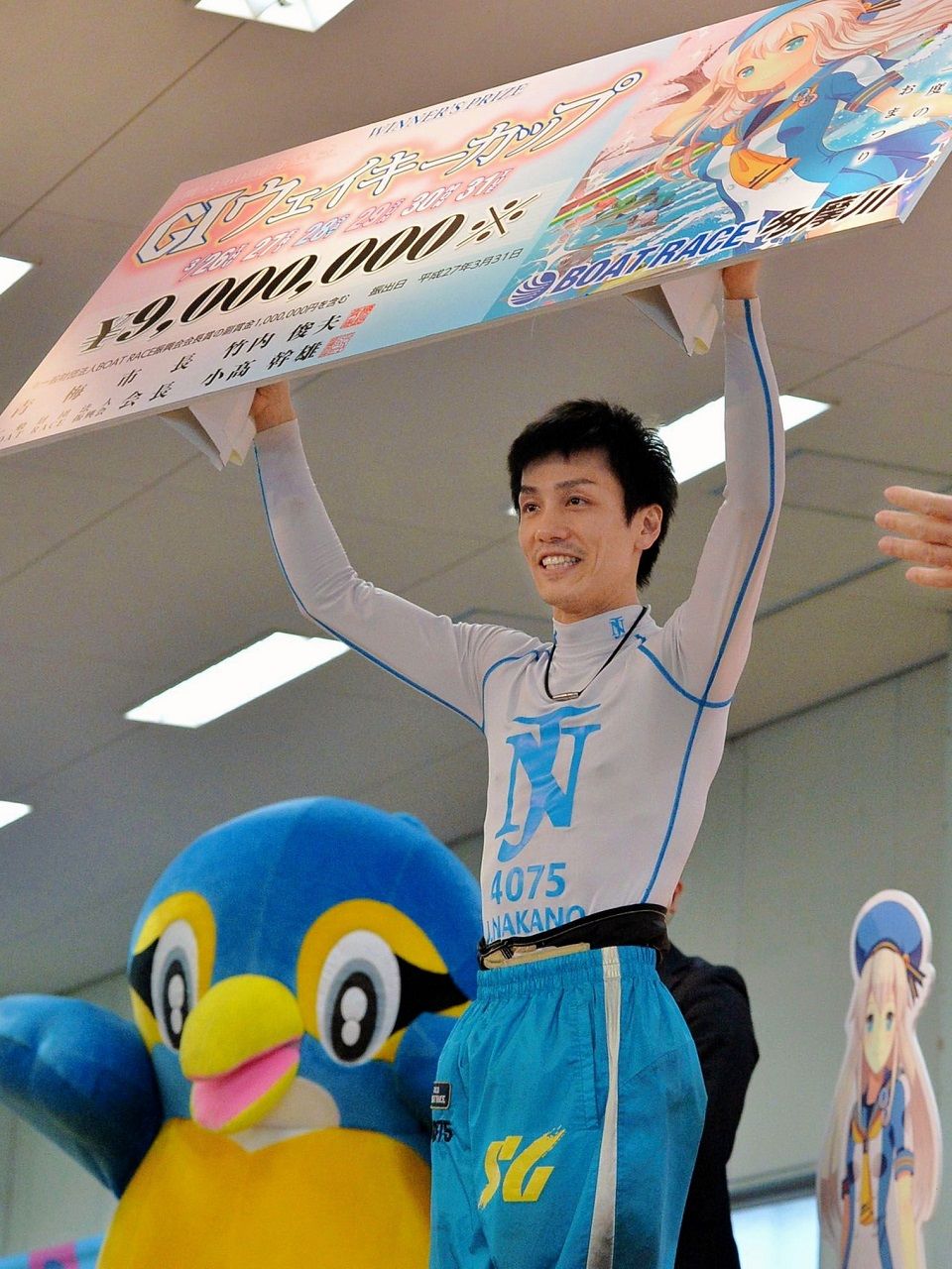 多摩川ボート「G1・開設60周年記念・ウェイキーカップ」はきょう(31日)、12Rで優勝戦が行われ、中野次郎(33)=東京・86期・A1=がイン速攻で1着。11年4月の平和島周年以来、4年ぶり5回目のG1優勝を飾った。2、3着は徳増秀樹(静岡)、三井所尊春(佐賀)。