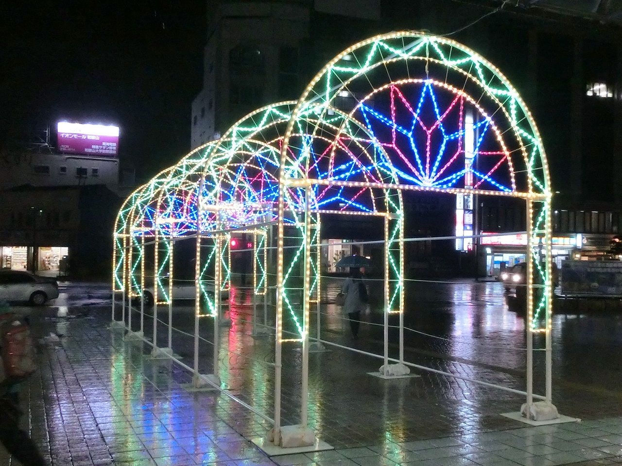 ライトアップされた歩道を見かけた。雨のせいか、誰も歩いていなかったが...。