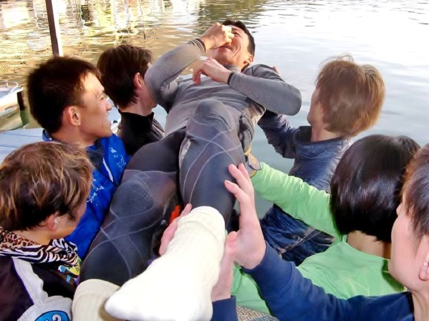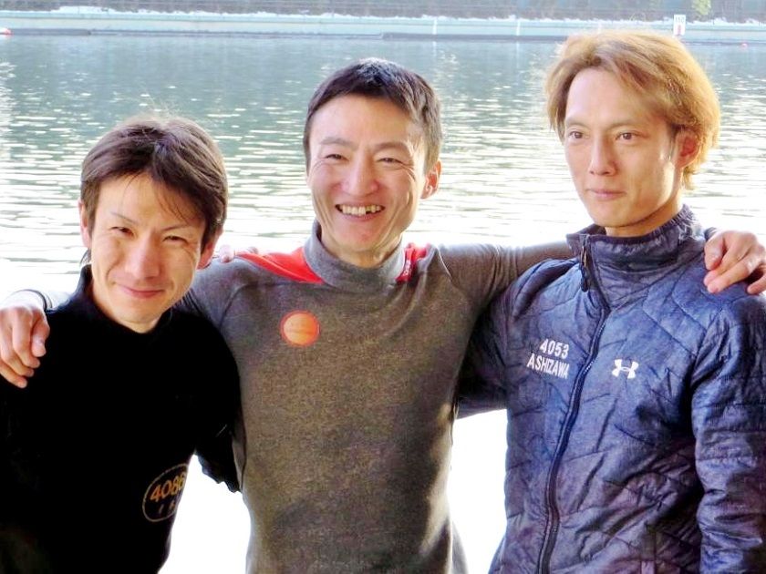 通算1000勝で水神祭に臨む福島勇樹(中央。左は寺本重宣、右は芦沢望)。