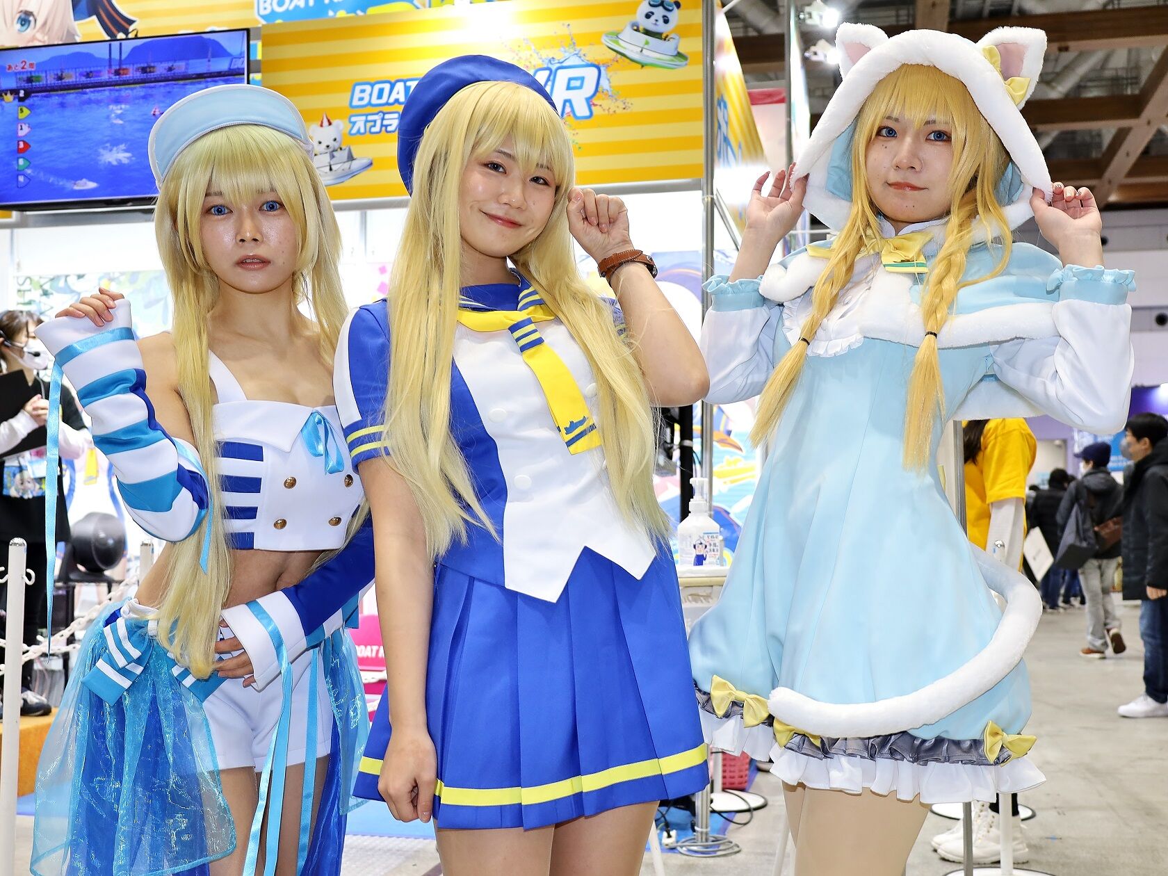 そして、3人のコンパニオン(山本美夢、北郷ゆい、深月りん)が来場者へ配布物を手渡したり、写真撮影に応じていた。関係者は「VRはかなり人気ですね。多くの方に体験していただけました」とブースはかなり盛り上がりを見せていたようだ。