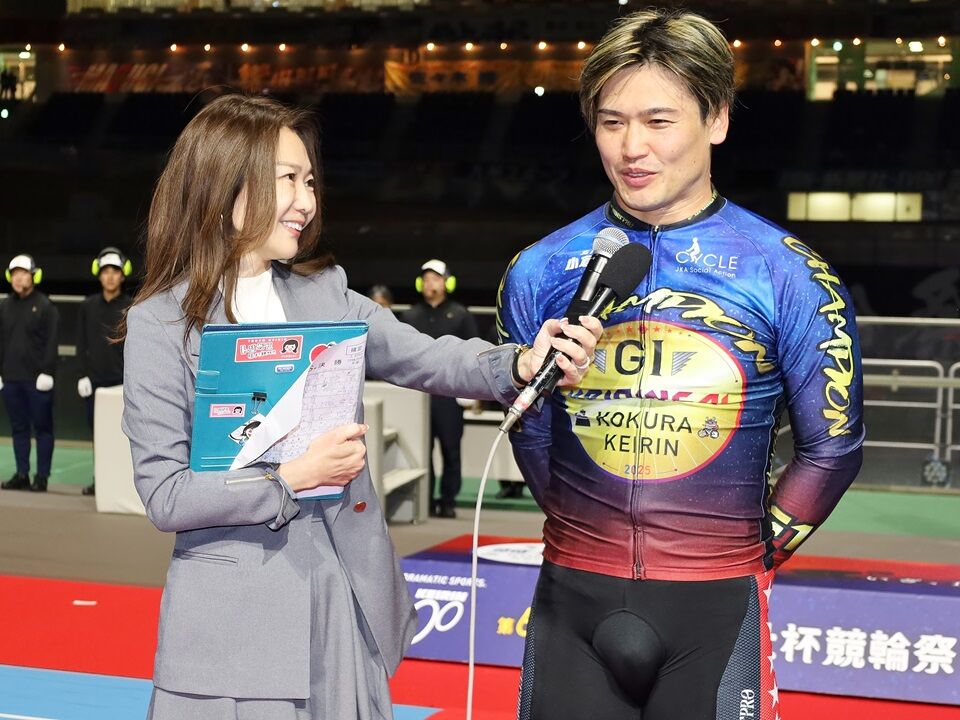 同期の吉田に前を任せた決勝。吉田は周回中3番手からレースを進め、後ろ攻めだった松井が動いてから、先頭は順番が変わっていく。吉田もきっちり前へ動き、最終的に3番手を確保して最終2角過ぎからスパート。「掛かりがすごかった。荒井さんが前に踏んだのが見えて、そこにスイッチしたけど、内から(山田英明=佐賀)が来て、なんとかしのいで...。まさか差すとは」。混戦となった最終3角から4角の攻防をしのいで直線に向き、最後は荒井をとらえて先頭でゴール。「差したのは分かった」とゴール後はガッツポーズで声援に応えた。