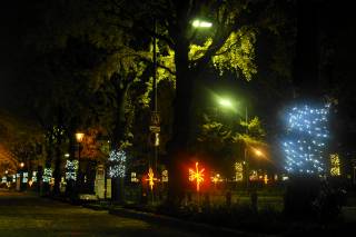 山下公園通り全域に光の回廊が出現し、やわらかな光で包まれています。
