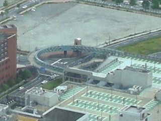 1999(平成11)年12月に竣工した、交差点の4つ角を結ぶ楕円形に作られた歩道橋です。