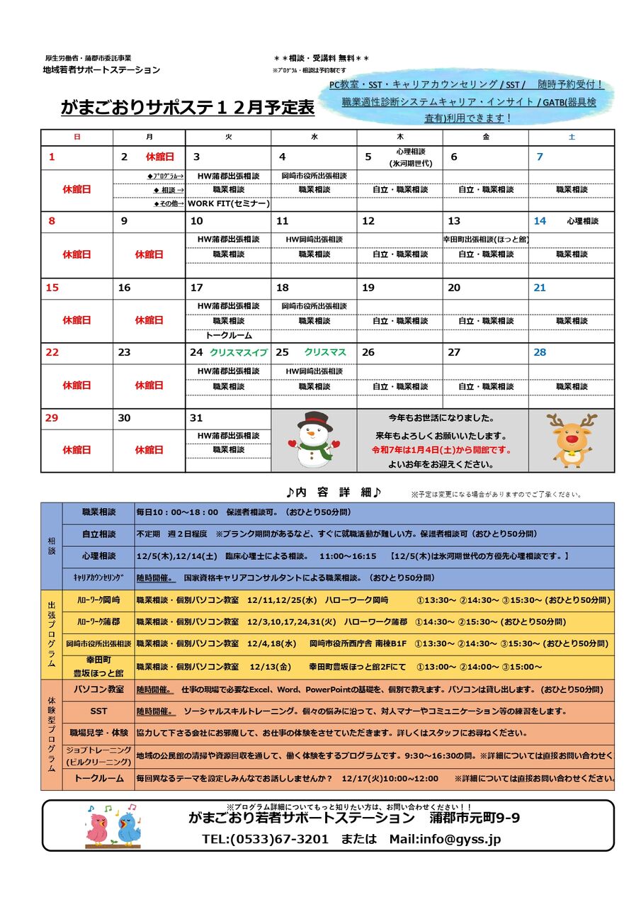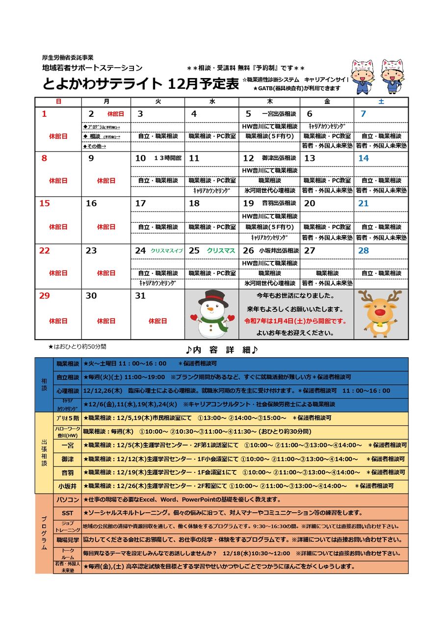 12月予定表できたよー
