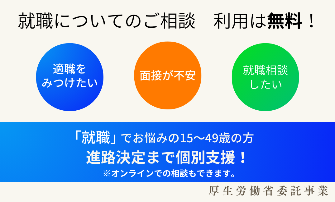 働く事に悩みを抱えている15歳〜49歳の方、まずはお電話を・・・