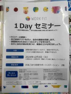 12月はWORK FIT 「1DAY セミナー」を開催します。
