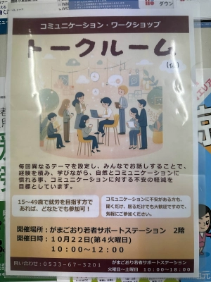 10/22にはコミュニケーション・ワークショップ「トークルーム」を開催予定です