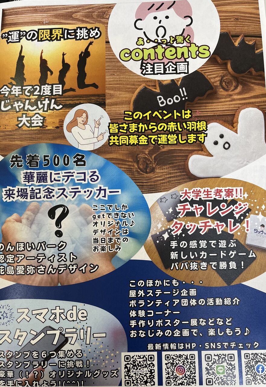 のんほいパーク認定アーティストの方のオリジナルデザイン【華麗にデコる来場記念ステッカー】のプレゼント(先着500名)やスマホdeスタンプラリー・じゃんけん大会等イベント盛りだくさん。