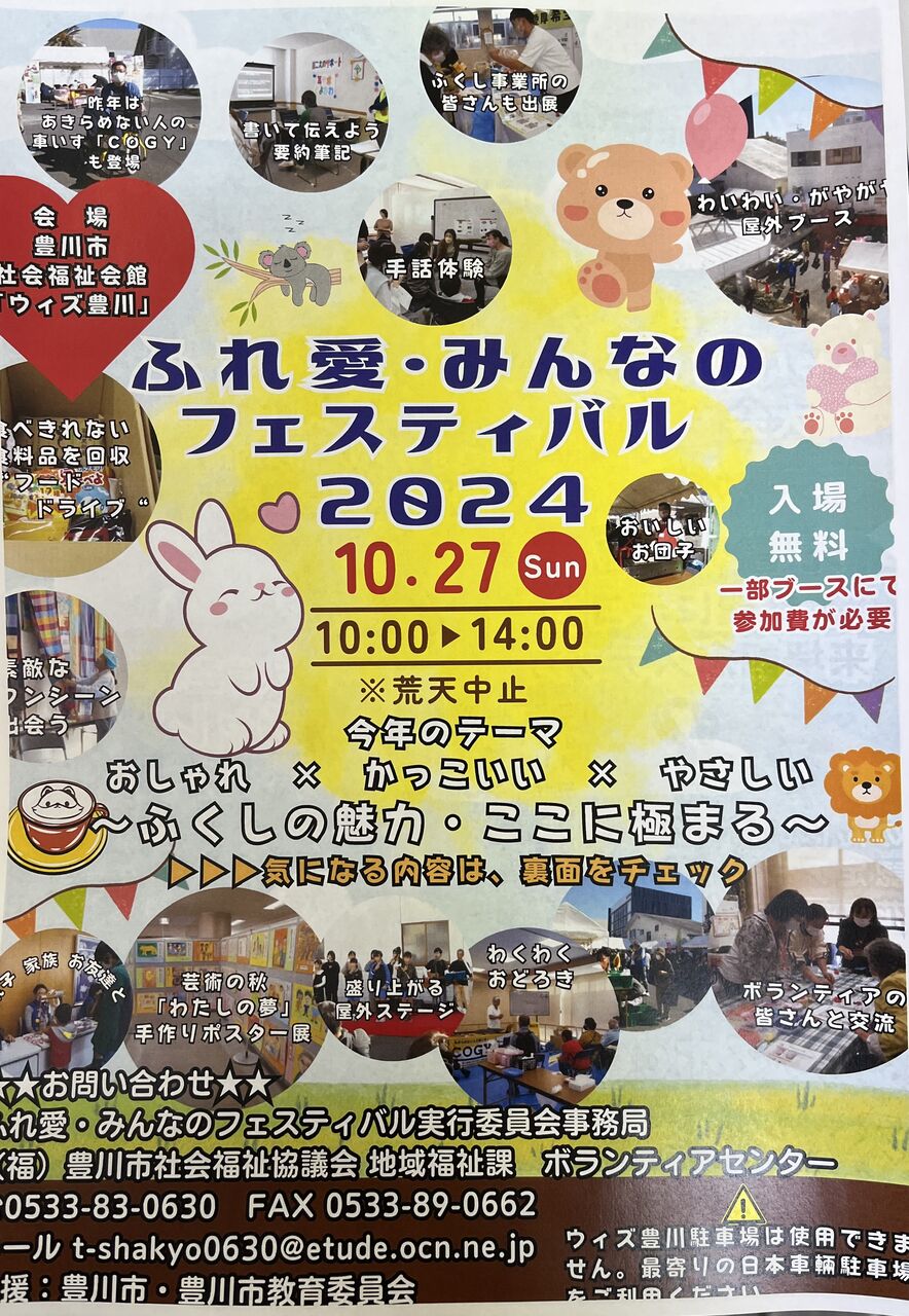 今年も豊川市社会福祉協議会主催『ふれ愛・みんなのフェスティバル2024』が開催されます