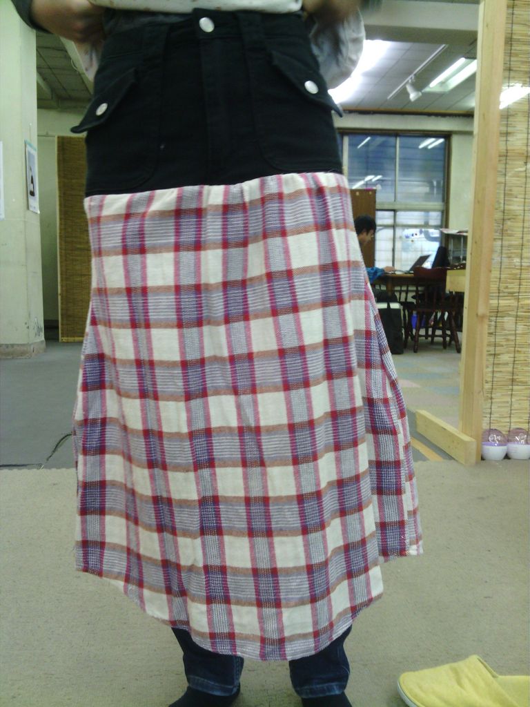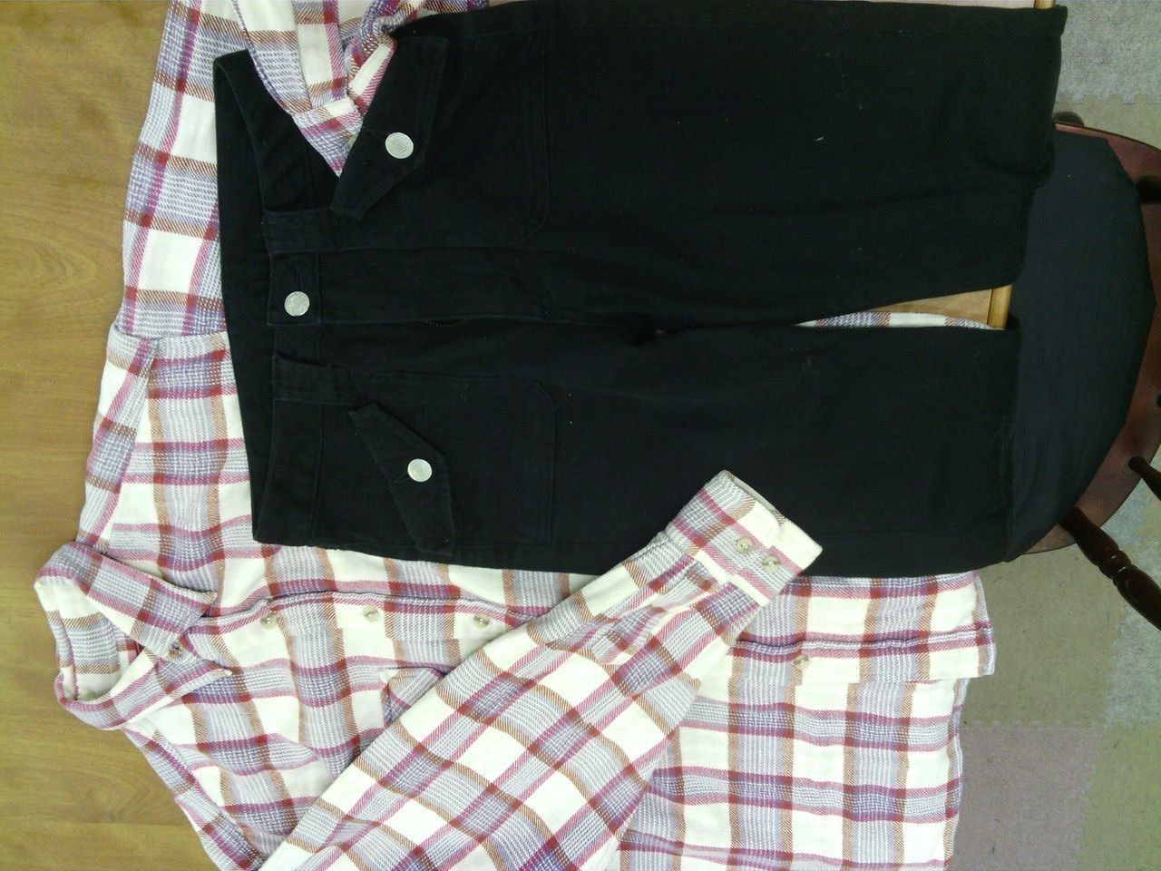 黒のデニムにチェックのシャツは、ザクザク・・ジョキジョキ裁断され