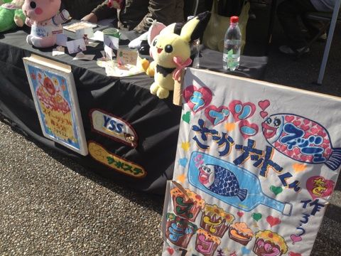 イベントで毎回おなじみ、サポステが誇るH画伯の看板と、スタッフ八木さん作のテーブルクロスで明るい雰囲気になりました