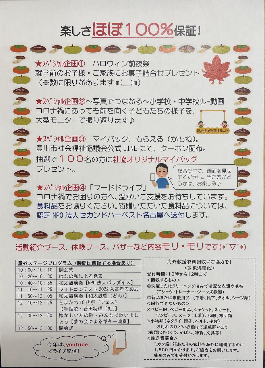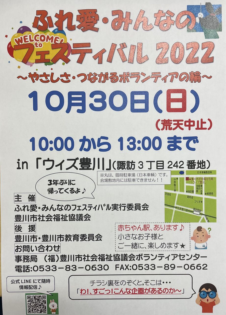 3年ぶりに豊川市社会福祉協議会さんにて『ふれ愛・みんなのフェスティバル』が開催されることとなりました。