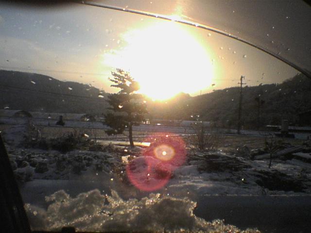 雪と夕日