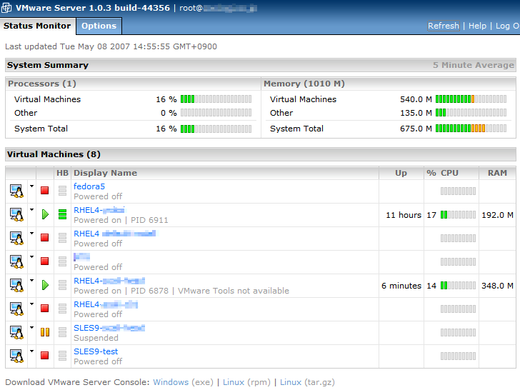 Power On, Power Off, Suspend, Resume等をブラウザから実行できて、VMware Server Consoleを起動する必要が無いのがいいですね。