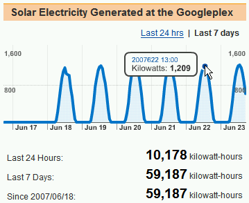 またGoogleはこの日、米カリフォルニア州マウンテンビューの本社でソーラーパネルを稼働させたことも明らかにした。発電量は1.6メガワットと、カリフォルニア州の平均的な家庭およそ1000世帯をまかなえるという。