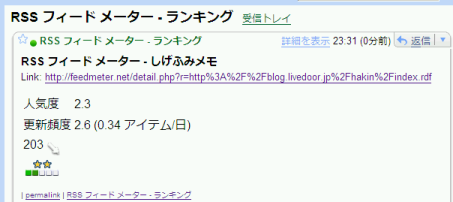 また、他のフィードからこのブログに張られているリンクの数も人気度に関係しています。