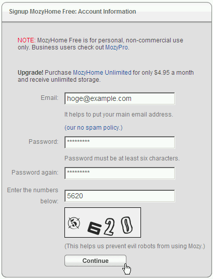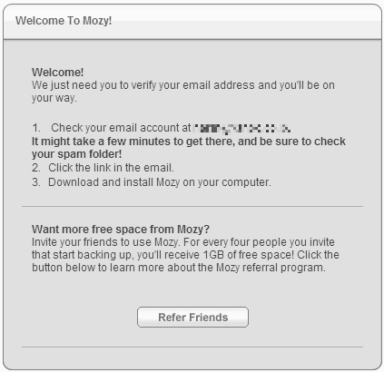 以下のリンクから Mozy のホームページに行って登録すれば256MB余分にもらえます。