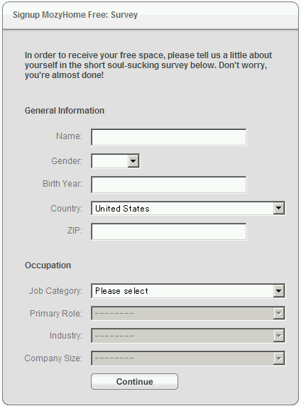 ここで、referral code を入力する欄が表示された場合(https://mozy.com/ に直接アクセスして登録した場合等)は、まだ紹介コードが有効になっていないので、私の紹介コード AXYDT3 を入力して submit を押せば、256MB分もらえます。