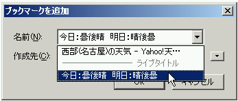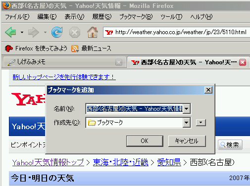 例として 西部(名古屋)の天気 - Yahoo!天気情報 をブックマークしてみます。