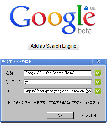 ベータ版のSSL経由のGoogle検索 https://encrypted.google.com/ は使っているでしょうか?