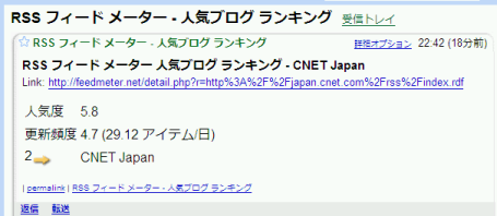 [画像:feed meterにランクインしたらGmail]