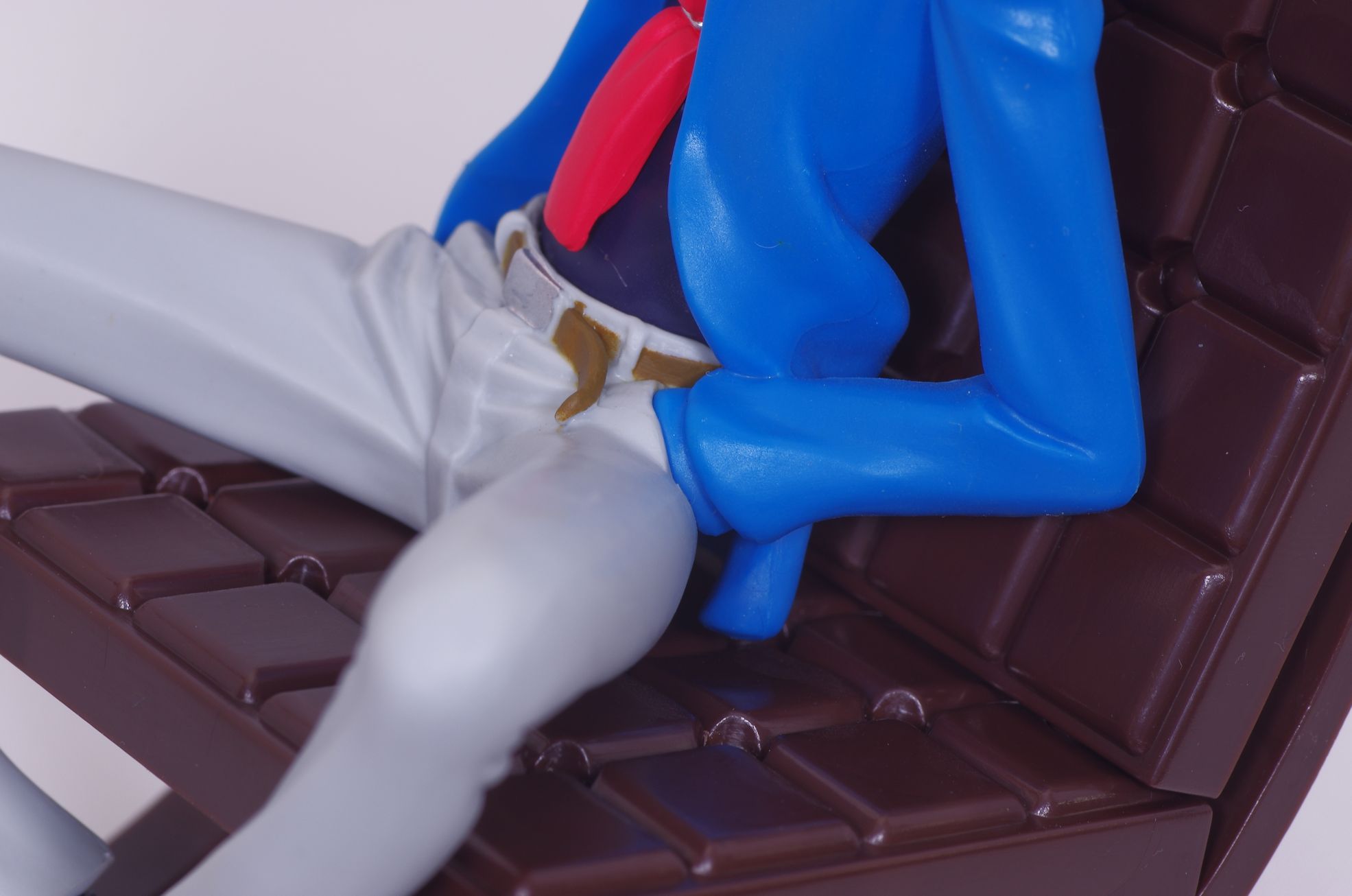 台座代わりのチョコレート色のイス(チョコレート色というか完全に板チョコwフィギュア全高は11.5cm)