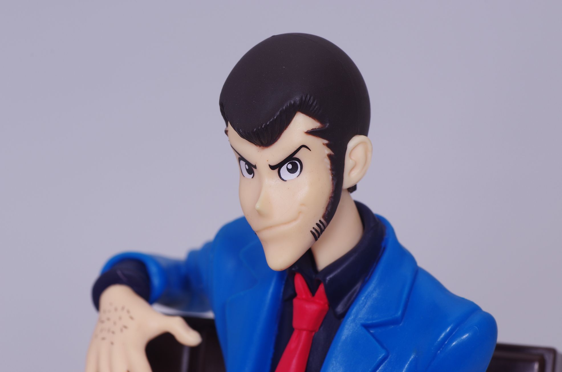 イスに腰掛けニヤリと微笑むルパン♪細かい仕草がルパンっぽい(×ばつC不二子ちゃんと一緒に飾れる仕様ナリ)