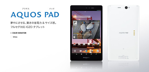 フルセグ&IGZO搭載7インチタブ ドコモ『AQUOS PAD SH-08E』が8月2日に発売