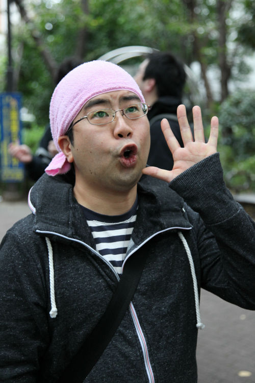 よっさん(デモではロックマンのマスク。茨城の珍獣)