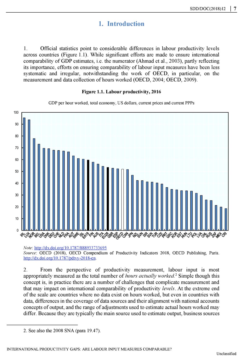 日本の1時間当たりの労働生産性は47・5ドルで、経済協力開発機構(OECD)加盟36か国中、20位だった。順位は前年と同じで、先進7か国では最低だった。