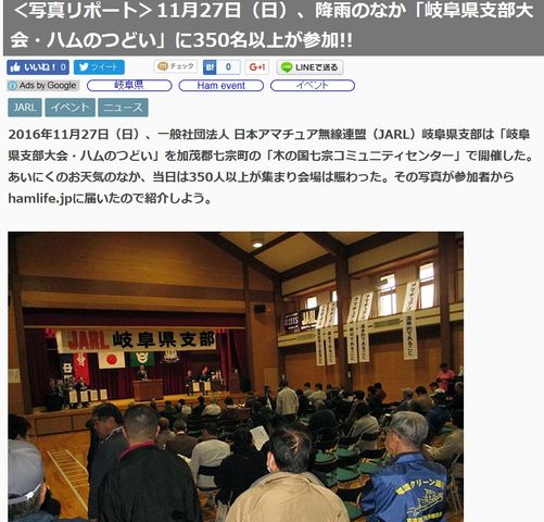 hamlife.jpに岐阜県支部大会・ハムのつどいのリポートが掲載されました。