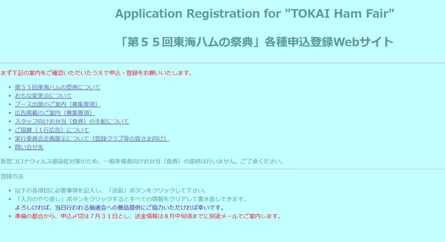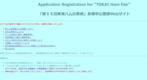 「第55回東海ハムの祭典」各種申込登録Webサイト