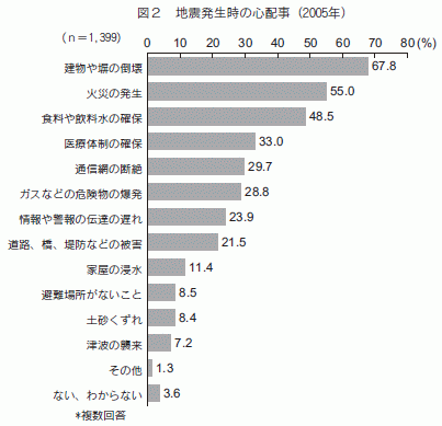 地震発生時の心配事 −建物倒壊への心配がトップ−