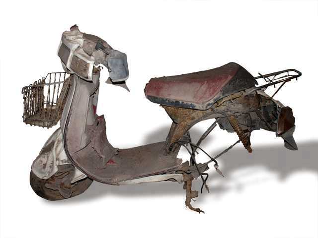 1991年5月30日の火砕流 島原市HPより 火砕流で溶けたバイク 雲仙岳被災記念館様より