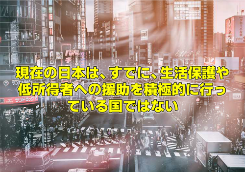 特に印象深かったのがタイトルにもした現在の日本は生活保護や低所得者への援助を積極的に行っている国ではないというところ。