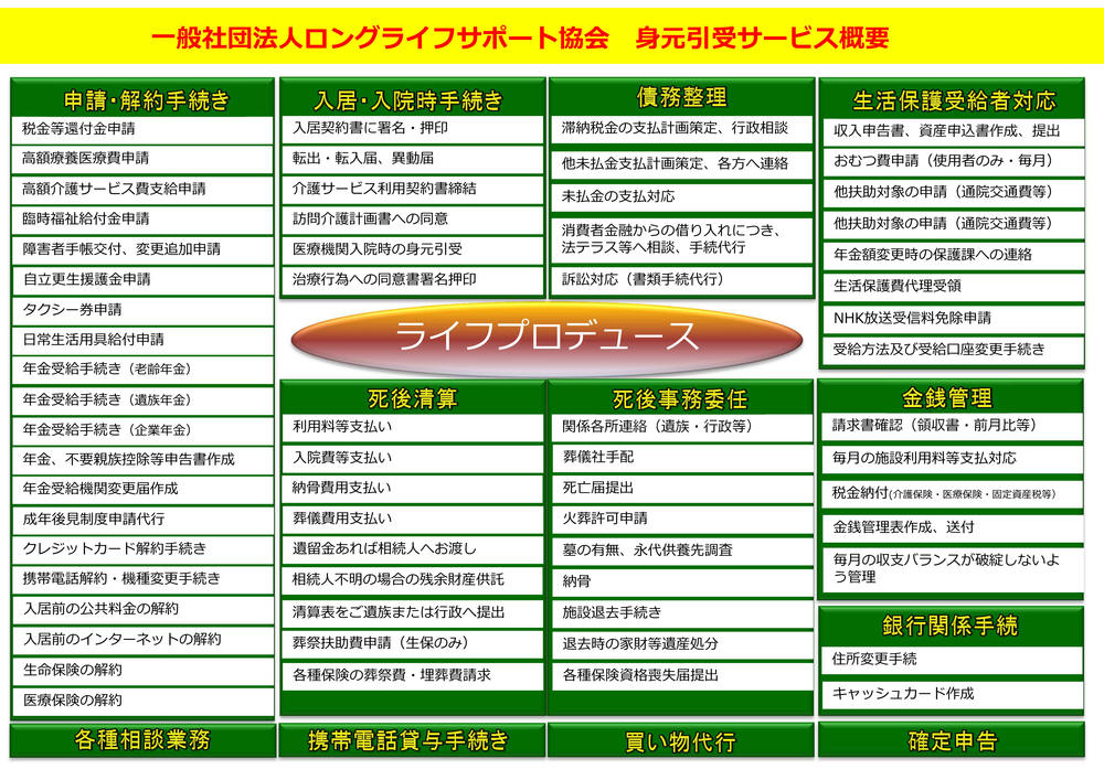 当協会は身元引受と法人コンサルの両面から高齢者の生活を支援する企業です。