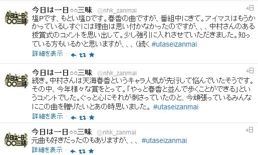 この選曲理由についてを塩Dがツイッターで語ってました。