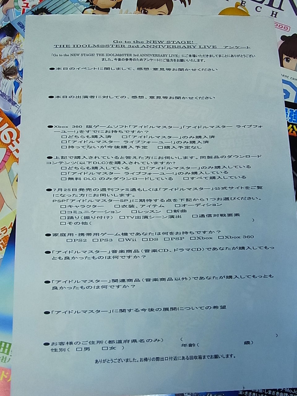 3rdライブであるパシフィコ横浜公演のアンケートの用紙が出てきてびっくり。